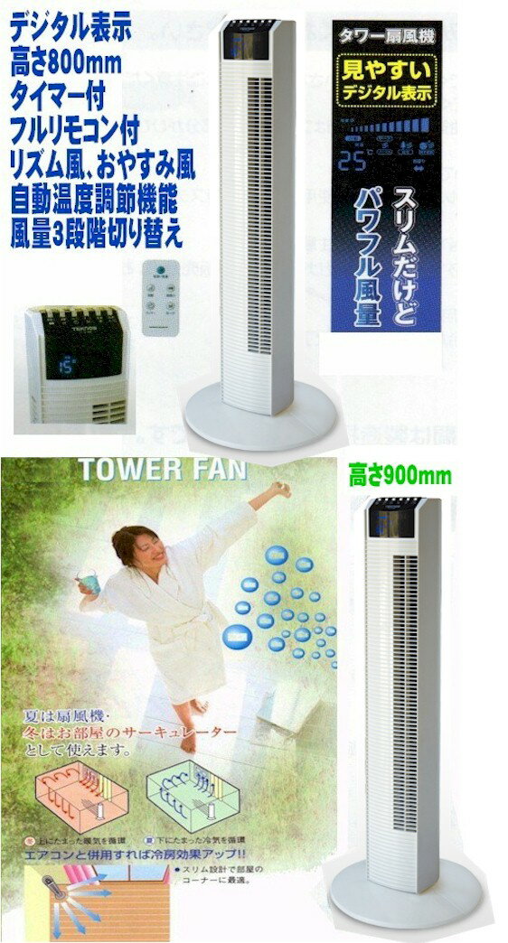 スリムタワーファン リモコン デジタル表示タイマー温度計付90cm高 スリムタワーリビング扇風機 首振り タイマー付き 省エネ節電 人気ランキング 人気 ファショナブル 節電 ランキング おしゃれ サーキュレーター